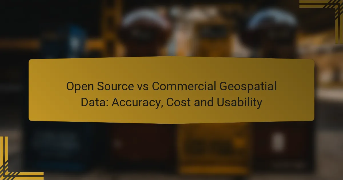 When comparing open source and commercial geospatial data, key factors such as accuracy, cost, and usability come into play. Commercial data typically offers higher precision due to extensive validation, while open source alternatives can be sufficiently accurate for various applications. Cost-wise, open source options are generally free, whereas commercial data may involve significant licensing fees. Additionally, usability varies, with open source tools emphasizing flexibility and customization, while commercial solutions prioritize user-friendly interfaces and support.